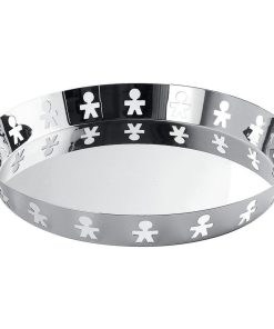 Portabuste in acciaio inossidabile 18/10, lucido, traforato al laser, declinazione del celeberrimo girotondo creato dal duo King-Kong (Giovannoni e Venturini) e assurto ad icona del design ludico, basato sull’uso di “codici affettivi”.