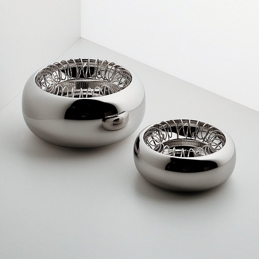 Progetto originariamente prodotto in metallo argentato da Bacci a Bologna, è stato ripreso da Achille Castiglioni per Alessi nel 1986, con alcuni cambiamenti formali e dimensionali.