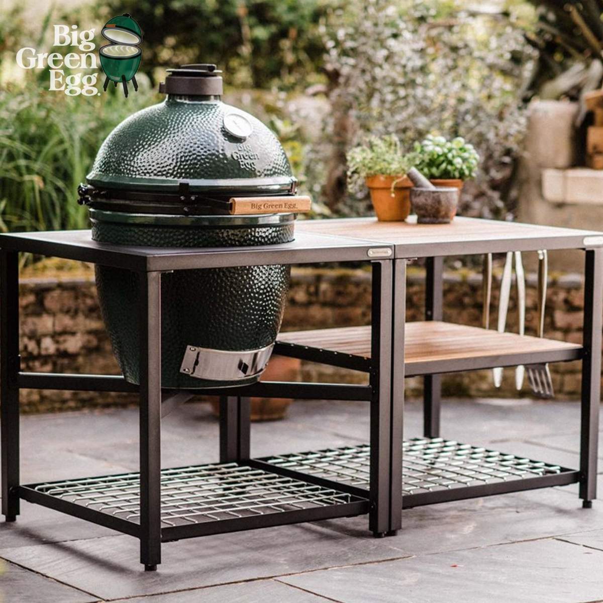 Pratica base studiata appositamente per contenere comodamente il tuo Egg Large costruita in acciaio inox e alluminio, il telaio è dotato di una griglia collocata nella parte inferiore e di ganci laterali molto comodi per appendere i tuoi accessori in modo da avere un maggiore spazio mentre cucini.