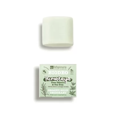 Biodeo Himalaya Deo solido extra fresco a lunga durata Timo Bianco & Tea Tree. Profumo fresco ed energizzante. Il Bio Deo solido Himalaya è una ventata di freschezza per le tue ascelle! Ha una formula ricca di attivi tonificanti e purificanti, come Menta, Tea Tree ed Eucalipto, che donano alle ascelle una sensazione di extrafreschezza a lunga durata. La Tapioca e il Timo Bianco lasciano le ascelle asciutte e setose. È arricchito con Canapa e Avocado per una pelle rigenerata ed elastica. Himalaya ha una profumazione fresca ed energizzante e si prende cura delle tue ascelle lasciandole libere di traspirare! Combatte naturalmente i cattivi odori riequilibrando il microbioma e preservando la flora batterica buona. La sua azione efficace e super confortevole e non ostruisce i pori! Ha un’azione a lunga durata. Il formato concentrato e compatto rende Himalaya ideale per essere infilato in valigia o nel borsone della palestra e combattere gli odori spiacevoli anche fuori casa! NO ALCOOL E SALI DI ALLUMINIO Formato: