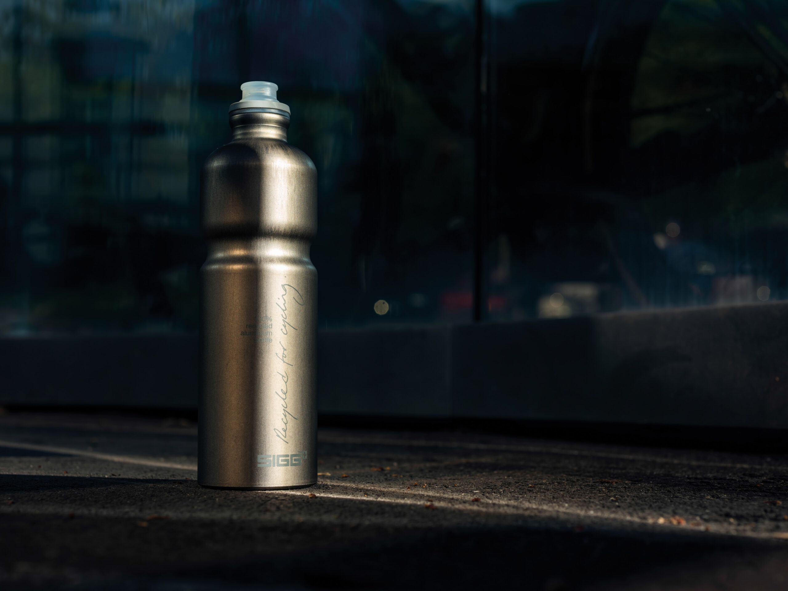 Borraccia leggera in alluminio riciclato al 100%, dal facile utilizzo con una singola mano.