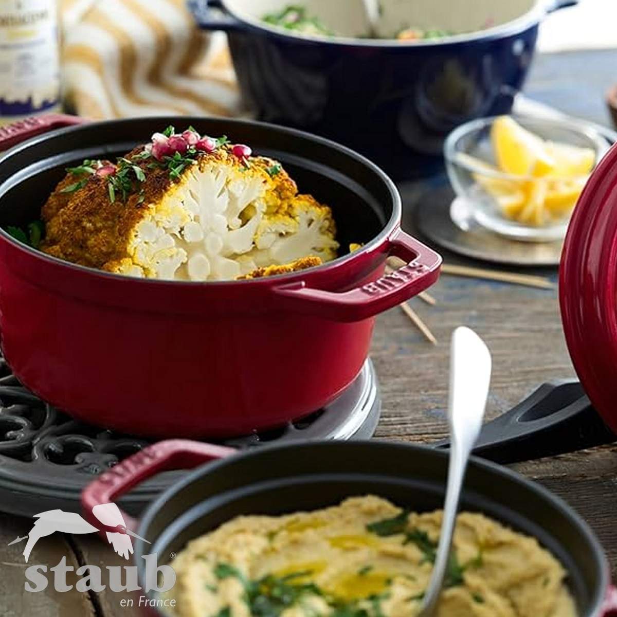 Tipica della cucina francese questa cocotte è in realtà adatta a preparare molteplici ingredienti, non solo dai brasati agli stufati che richiedono cotture più lente ma anche zuppe, creme o vellutate, fritture, soufflè, e persino il pane.