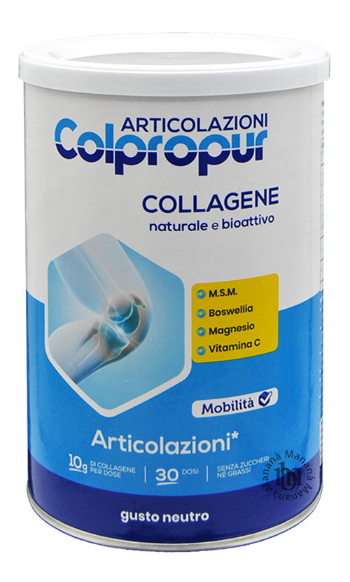 Integratore alimentare in polvere a base di collagene idrolizzato Colpropur D®, arricchito con Magnesio, Vitamina C, M.S.M. e Boswellia.