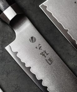 Il bordo del coltello, in stile spada giapponese, è lucidato per ottenere un elegante contrasto con il resto della lama. La lama ha una finitura satinata: durante il taglio si riduce l’attrito consentendo tagli più precisi.