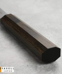 Il manico, dalla tipica forma ottagonale giapponese, è realizzato in legno pakka di colore marrone scuro e risulta particolarmente leggero e maneggevole durante l’utilizzo; il design del coltello rispecchia perfettamente il nome “Hana” che in giapponese significa fiore, simbolo di eleganza e raffinatezza.