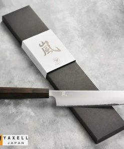 Nello specifico questa lama è realizzata secondo il tradizionale processo di forgiatura giapponese chiamato San Mai, infatti il suo nucleo è in acciaio MOVAX, una lega di cromo, molibdeno e vanadio che la rende particolarmente resistente alla corrosione e all’usura.