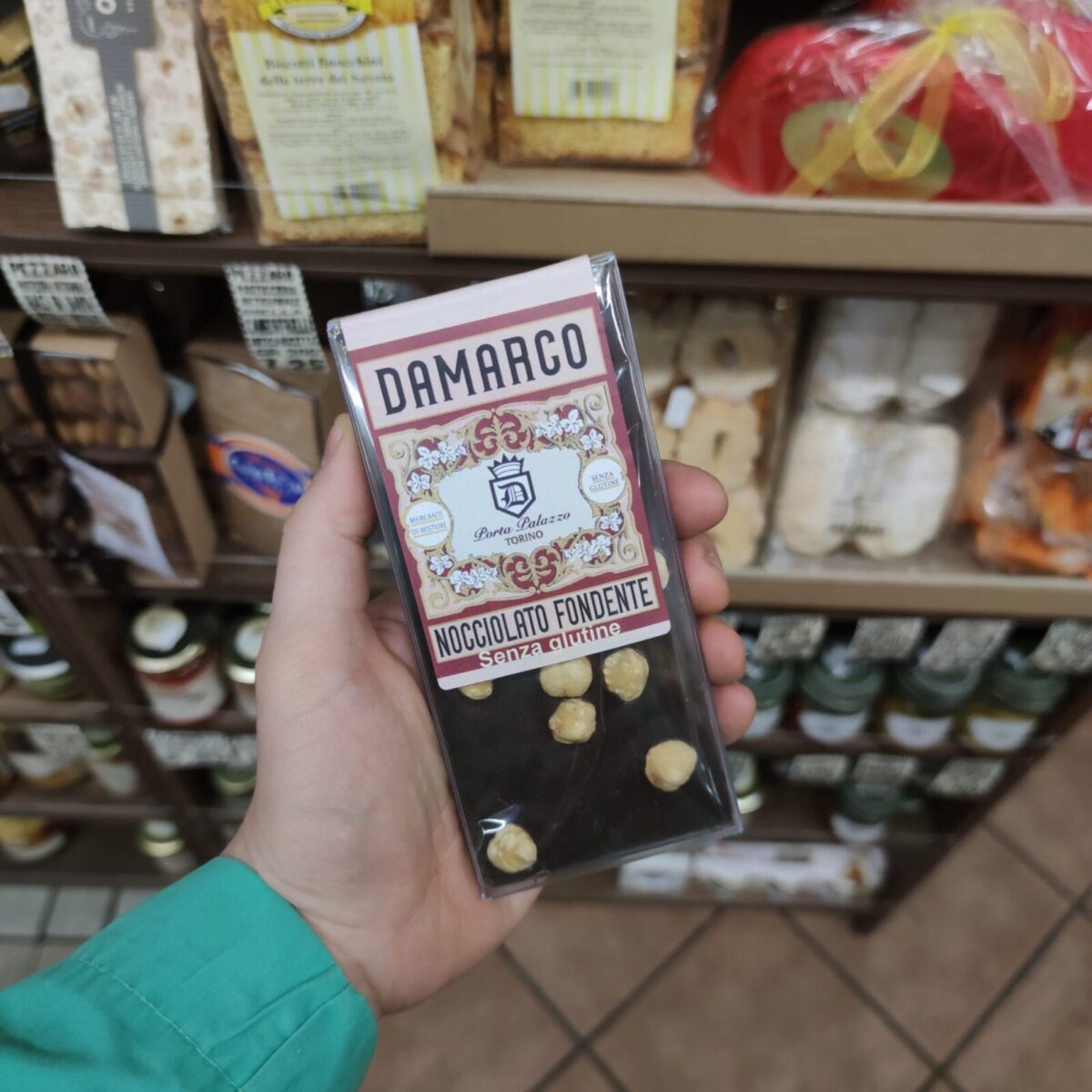 Damarco Tavoletta Nocciolato Fondente è un prodotto artigianale dal gusto intenso. Realizzata con pregiate nocciole Piemonte IGP, questa tavoletta fonde il sapore amaro del cioccolato fondente con la dolcezza delle nocciole tostate. Incartata a mano nel laboratorio di Torino, ogni tavoletta è unica e garantisce un’esperienza gustativa autentica. Perfetta per gli amanti del cioccolato fondente e per chi cerca un prodotto di alta qualità. Confezione 100 gr