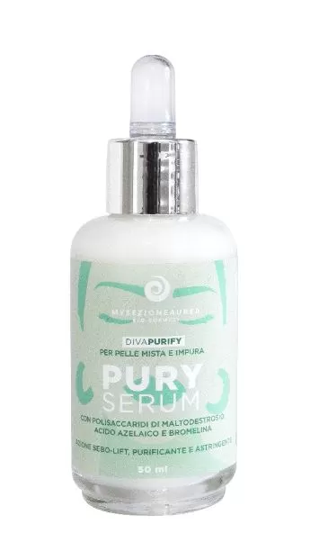 PURY SERUMDIVA PURIFY con polisaccaridi di maltodestrosio, acido azelaico e bromelina ad azione sebo-lift, purificante e astringente Indicato per pelle impura, mista, acneica e punti neri MY BEAUTY ROUTINE Agita prima dell’uso DETERGI LA PELLE PRIMA DELL’USO VAPORIZZA IL TONICO-MIST APPLICA SU VISO, COLLO E DECOLLETE SE NECESSARIO APPLICA LA CREMA VISO O IL BOOSTER NOTTE DIVADIVINE