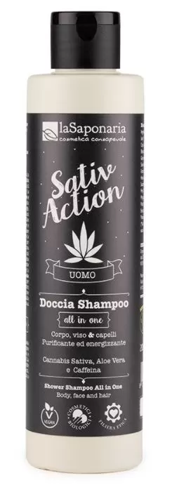 Un concentrato di natura in questo doccia shampoo All in One che racchiude un mix di ;Aloe vera, nota per rinfrescare e idratare, la Caffeina per dare una sferzata di energia e la Cannabis sativa per un’azione calmante e lenitiva sulla pelle e nutriente sui capelli. La sua naturalissima formula svolge anche un’azione purificante che lo rende un prodotto ideale dopo lo sport, per allontanare batteri e cattivi odori. Portalo con te dove vuoi e lasciati avvolgere dalla sua freschezza… dalla testa ai piedi! Il flacone del Doccia Shampoo All in one è inbioplastica, derivata dalla canna da zucchero Quantità: Ingredienti: Aqua,Aloe Barbadensis Leaf Juice*, Sodium Coco Sulfate,Coco Glucoside,Betaine,Cocamidopropyl Betaine,Disodium Capryloyl Glutamate,Glycerin,Sodium Lauroyl Sarcosinate,Sodium Chloride,Cannabis SativaSeed Extract,Arctium Lappa Root Extract*,Humulus Lupulus Flower Extract*,Caffeine,Saccharide Isomerate,Citrus Aurantifolia Peel Oil Distilled,Glyceryl Oleate,Sodium Phytate,Citric Acid,Sodium Citrate,Parfum**,Benzyl Alcohol,Sodium Benzoate,Sodium Dehydroacetate,Potassium Sorbate,Limonene (*da agricoltura biologica, **da estratti naturali)