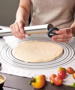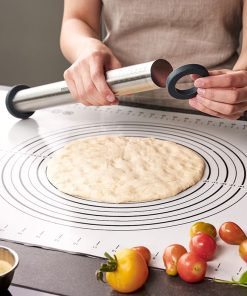 Con l’innovativo mattarello REGO puoi creare un impasto perfettamente liscio e uniforme meglio che con qualsiasi mattarello. Basta posizionare la coppia di anelli in silicone giusta per lo spessore di pasta desiderato sulla solida asta in acciaio inossidabile e iniziare a rotolare! Perfetto per torte, biscotti, pizza, pasta, ecc.
