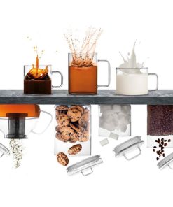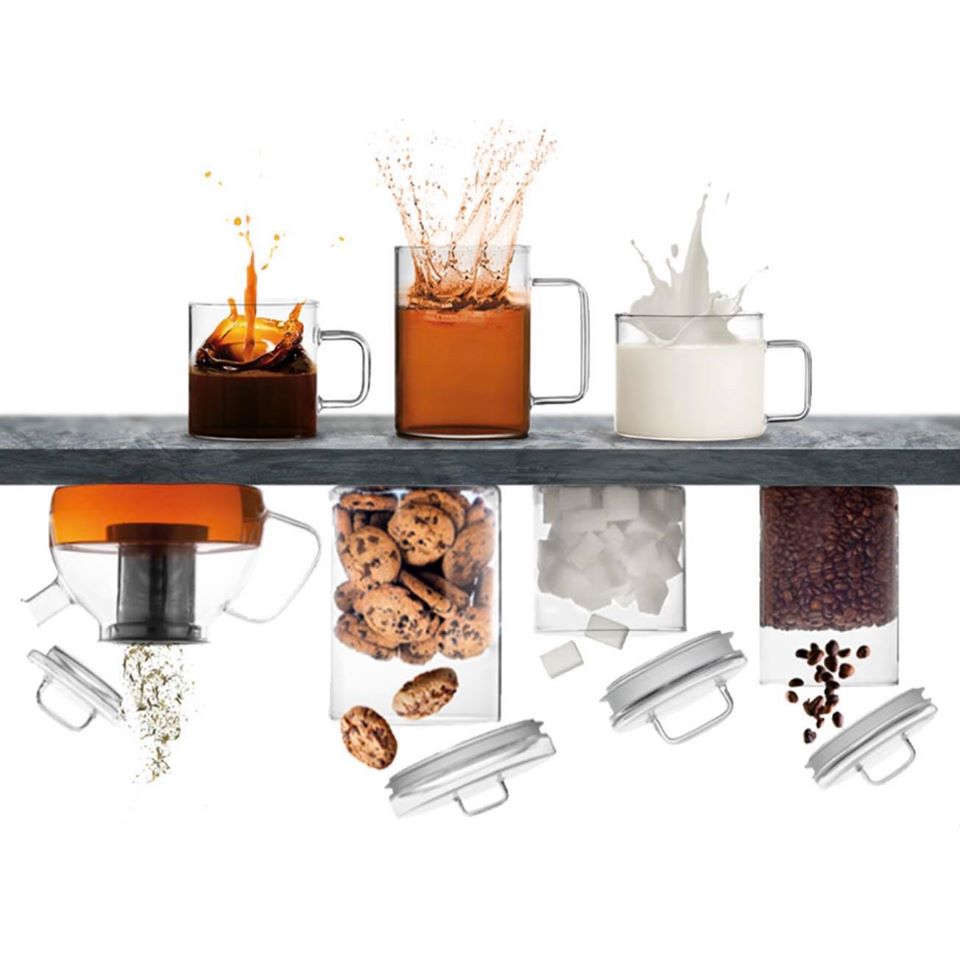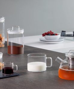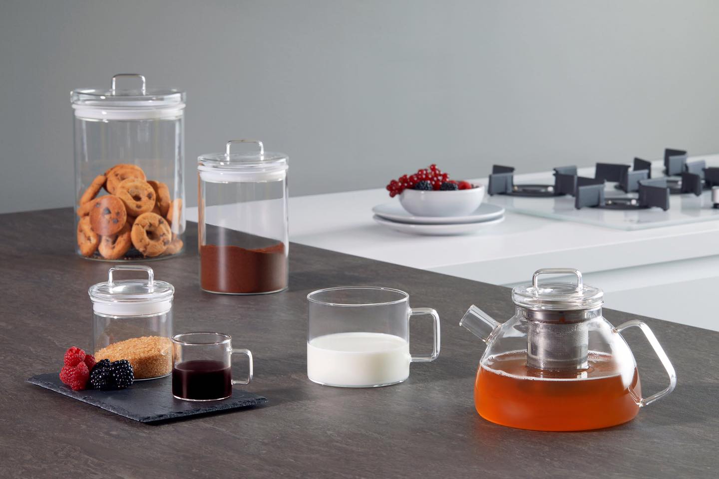 Linee moderne ed essenziali caratterizzano prodotti realizzati in vetro borosilicato ultraleggero e di alta qualità, altamente resistente al calore e agli urti.