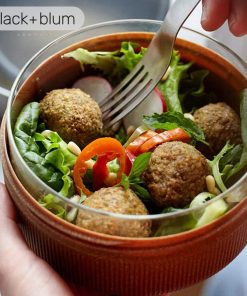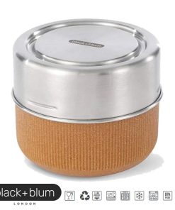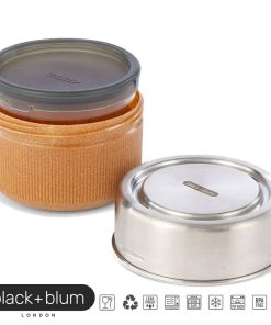 Il contenitore esterno è composto da polipropilene e fibra di legno di origine sostenibile che impedisce gli urti, proteggendo la ciotola in vetro e le mani in caso di utilizzo in microonde.