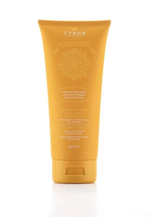 Impacco Riflessante con Erbe Tintorie & Acido IaluronicoCon Fito-Pigmenti Gold Hair e CamomillaRiflessanti e Protettivi del Colore Questo impacco capelli unisce i benefici delle Erbe ayurvediche all’innovativo 3D Hair Complex: molecole di Acido Ialuronico a basso ed alto PM creano una barriera contro l’umidita attorno al fusto del capello, riducendo l’effetto crespo e al tempo stesso donando idratazione e protezione alla fibra capillare. Gli estratti di erbe ayurvediche tintorie, uniti al potere illuminante e protettivo delle Alghe Brune, risultano ideali per la protezione del colore ed il mantenimento della sua brillantezza.Con Fito-pigmenti da Zenzero e Curcuma dalle proprietà riflessanti, e con estratti naturali di Hennè Neutro e Camomilla, è ideale per ravvivare e illuminare capelli dalle nuances bionde e chiare. – Avvertenze: Prodotto cosmetico per uso esterno. Tenere fuori dalla portata dei Bambini. ;0.0001% VEGAN CRUELTY FREE CERTIFICATO AIAB