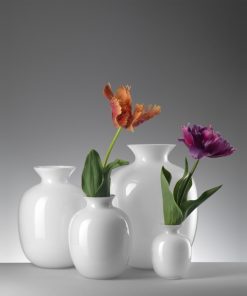 I vasi della collezione Rialto sono realizzati in vetro incamiciato bianco, in quattro diverse dimensioni e con decoro di colore grigio, sabbia o verde menta. Oltre che come dei veri e propri vasi, possono essere utilizzati come oggetti d’arredo, anche combinando tra loro le diverse forme e i colori.