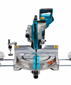 La Troncatrice Radiale Makita LS1219L 1800W precisa ad alta capacità con motore da 1.800 W per uso professionale. Il sistema a doppia slitta riduce la necessità di spazio, consentendo di posizionare la macchina a parete.