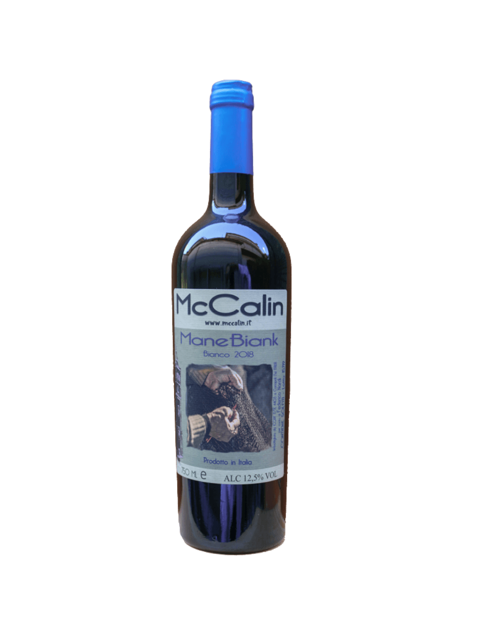 Il vino bianco Manebinak di tenuta McCalin viene ottenuto con un blend di uvaggi autoctoni a bacca bianca.