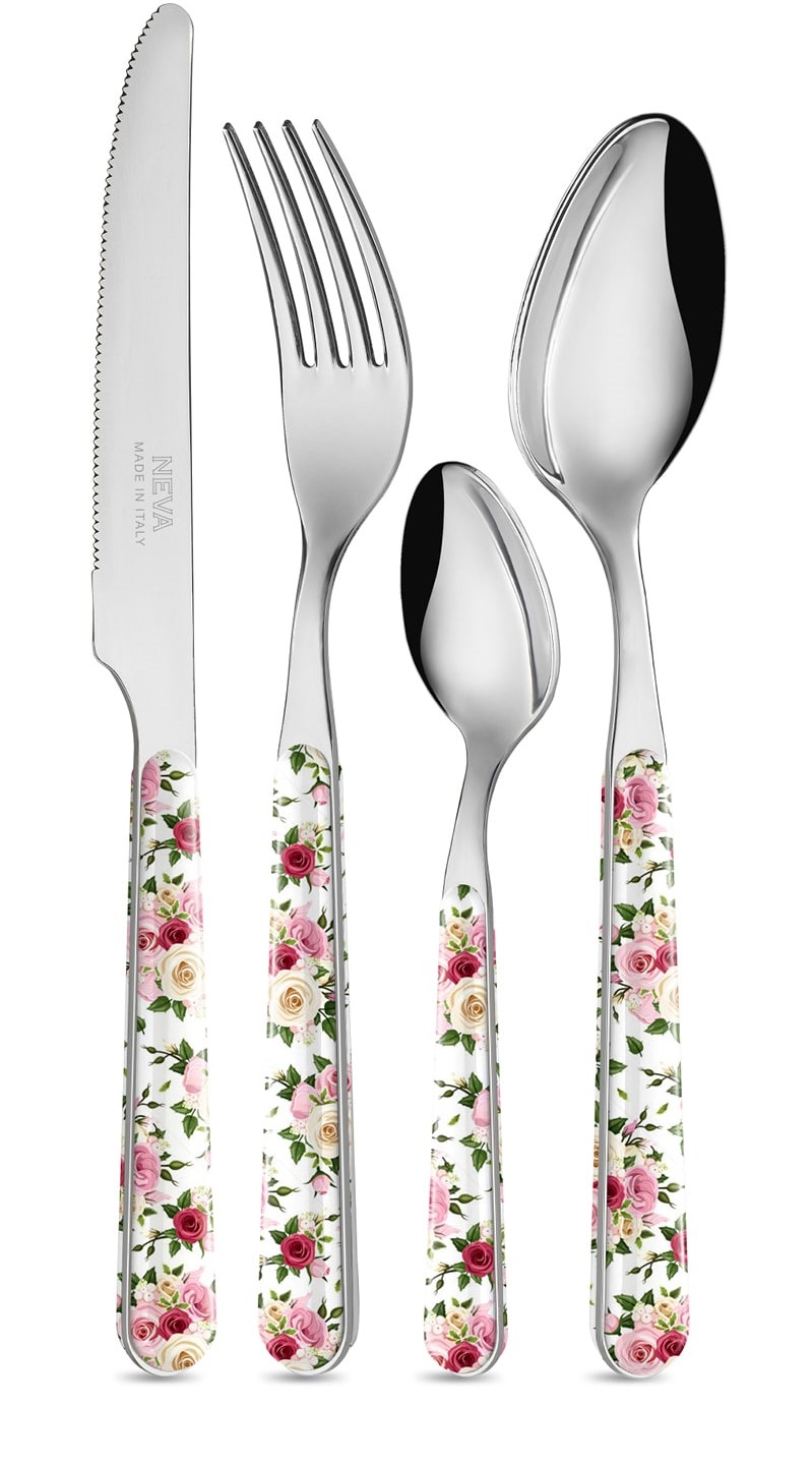 Le rose e il loro intramontabile fascino sono le protagoniste della linea di posate “Roses” prodotta da Neva Posateria Creativa.