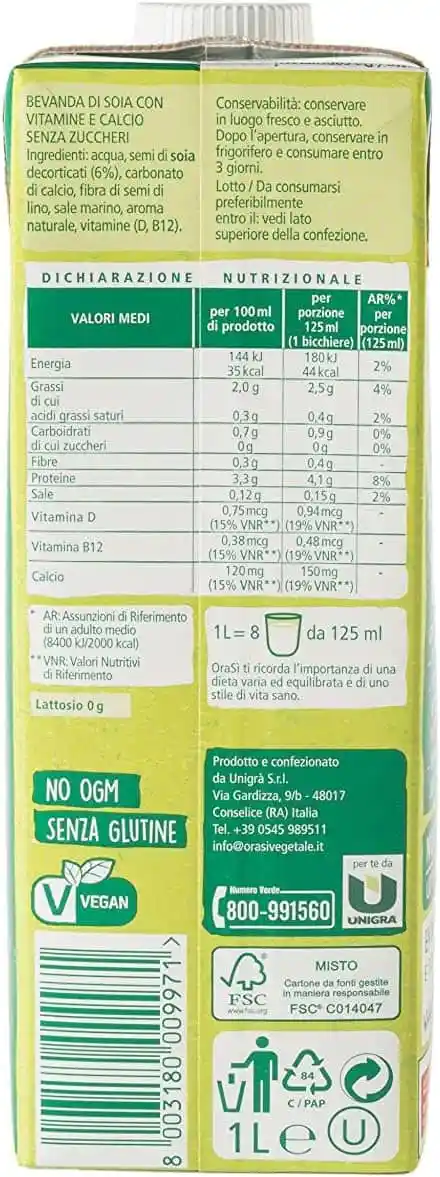 ORASI’BEVANDA SOIA SENZA ZUCCHERO 1 LT