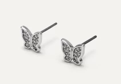 Orecchini testati al Nichel, Cadmio e Piombo, con perno in acciaio chirurgico. Orecchino a lobo con piccola farfalla con zirconi vivace, delicato, fine Informazioni aggiuntive Colore: Argento Dimensioni Pietre: 1 mm Lunghezza perno: 10 mm Materiale del Gioiello: Ottone ipoallergenico Materiale del Perno: Acciaio chirurgico Peso: 1,45 g Pietre: Zircone di alta qualità