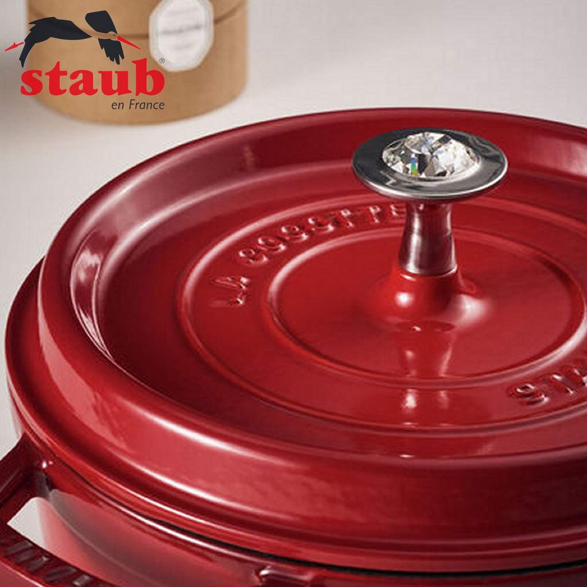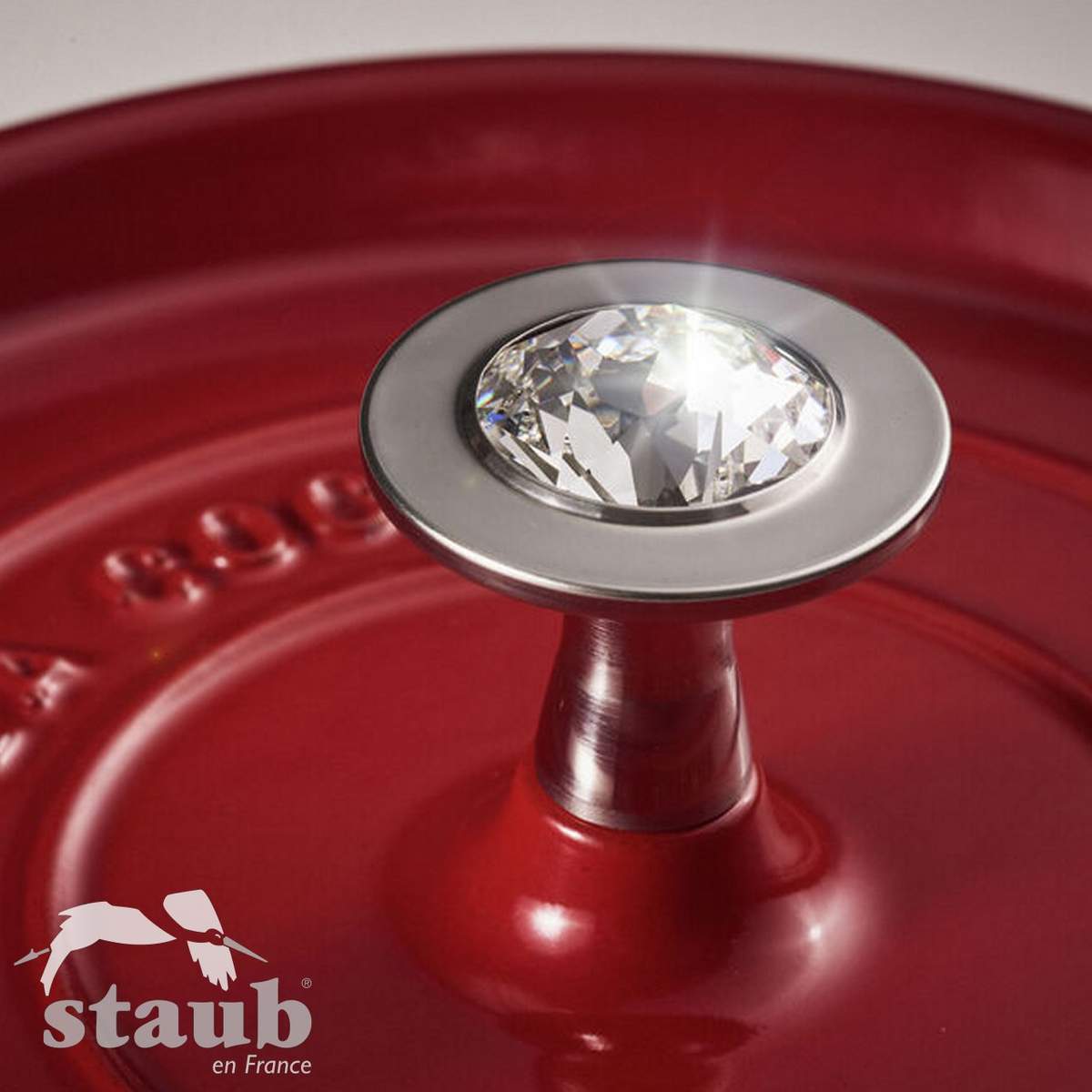 Grazie al nuovo pomello realizzato con cristallo Swarovski potrai accendere la tua cucina e dare un tocco scintillante e glamour alla tua cocotte in ghisa Staub.