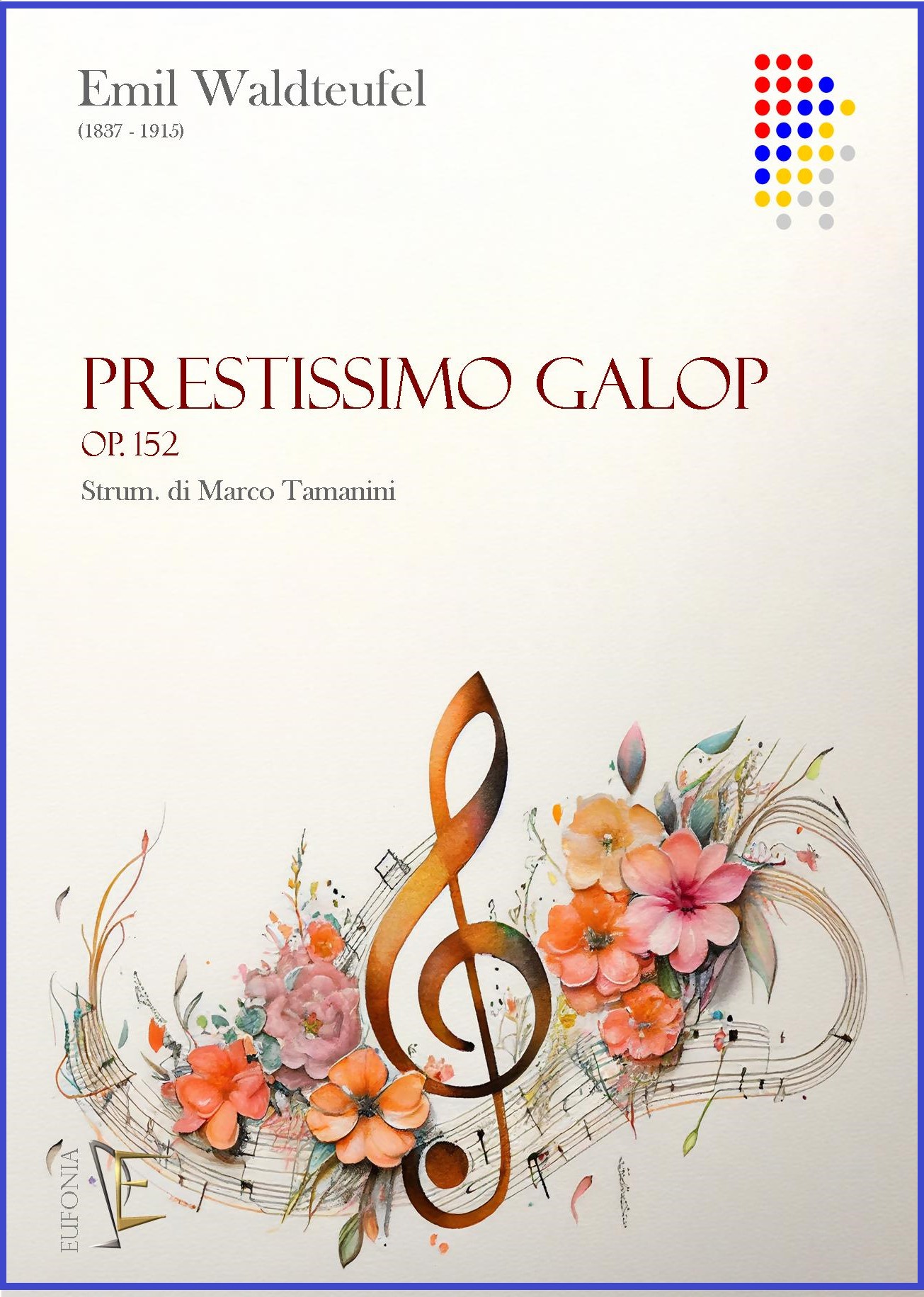 Proprio come l’illustre suo collega austriaco Johann Strauss figlio, anche Émile Waldteufel proveniva da una famiglia di musicisti di successo e, proprio come Strauss, la sua produzione musicale fu rivolta alla composizione di musica da ballo (principalmente valzer e polke). Nato a Strasburgo, all’età di sette anni, vinse una borsa di studio presso il prestigioso Conservatorio di Parigi, dove Emile avrebbe trascorso tutto il resto della sua vita. Il maggiore successo di Waldteufel fu il valzer Les Patineurs (Il valzer dei pattinatori su ghiaccio) op. 183, composto nel 1882. Il Prestissimo Galop op. 152 del 1877, che prende il nome dall’andatura di corsa più veloce del cavallo, particolarmente apprezzato come ballo finale di fine spettacolo, ben si inserisce nella caratteristica produzione musicale di Waldteufel, fatta di valzer, polke, mazurche ed, appunto, galop, che gli valsero l’appellativo di “Strauss di Parigi”