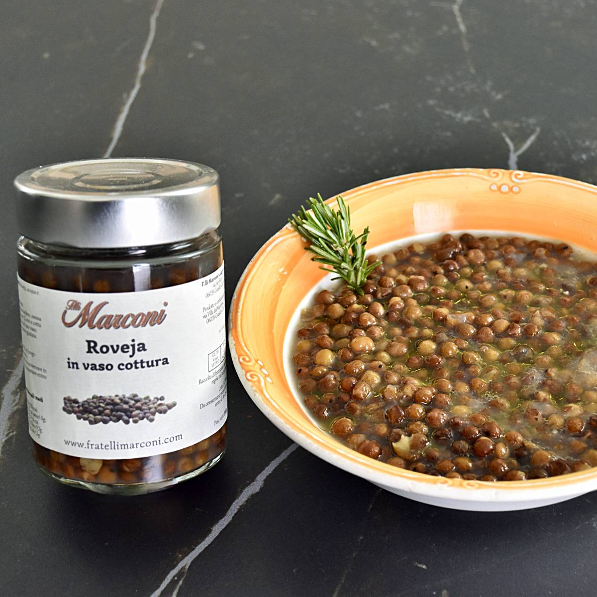 La Roveja è un antichissimo legume simile al pisello, dal seme colorato che va dal verde al marrone, noto anche come pisello dei campi, pisello selvaticho o Robiglio, in versione vaso cottura, ovvero cotta direttamente nel vaso, conservando così tutti i suoi nutrienti, senza disperdere nessun principio nutritivo.