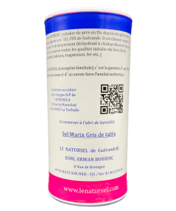 Un sale marino non raffinato, prodotto artigianalmente nella zona delle saline di Guérande, nella regione della Loira Atlantica in Francia.