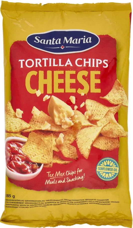 Le Tortilla chips al formaggio Santa Maria, sono croccanti e sottili sfoglie di mais fritte ideali da servire come antipasto, accompagnate dalle classiche salse messicane.