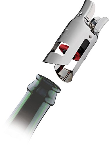 Con questo pratico tappo di bottiglia in solido acciaio, le bottiglie di spumante e champagne aperte possono essere conservate in sicurezza. Il meccanismo di bloccaggio a molla consente di richiudere ermeticamente le bottiglie con una sola mano, in modo che le bevande gassate rimangano fresche più a lungo. In questo modo lo champagne nobile può essere conservato orizzontalmente, senza pressione e senza apertura incontrollata del tappo. Una vera delizia per gli occhi e per il palato!