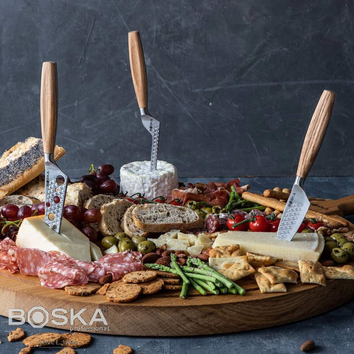 Dal formaggio più morbido come il Briè a quello più duro e stagionato, questo set presenta lame che si adattano ad ogni esigenza: la lama n°1 è perfetta per i formaggi a pasta molle ed assicura che la struttura rimanga intatta, la lama n°2 è adatta per formaggi a pasta molle e semidura, mentre il n°5 è adatto per formaggi duri, infatti la sua lama appuntita penetra nel formaggio senza piegarsi e con poco sforzo.