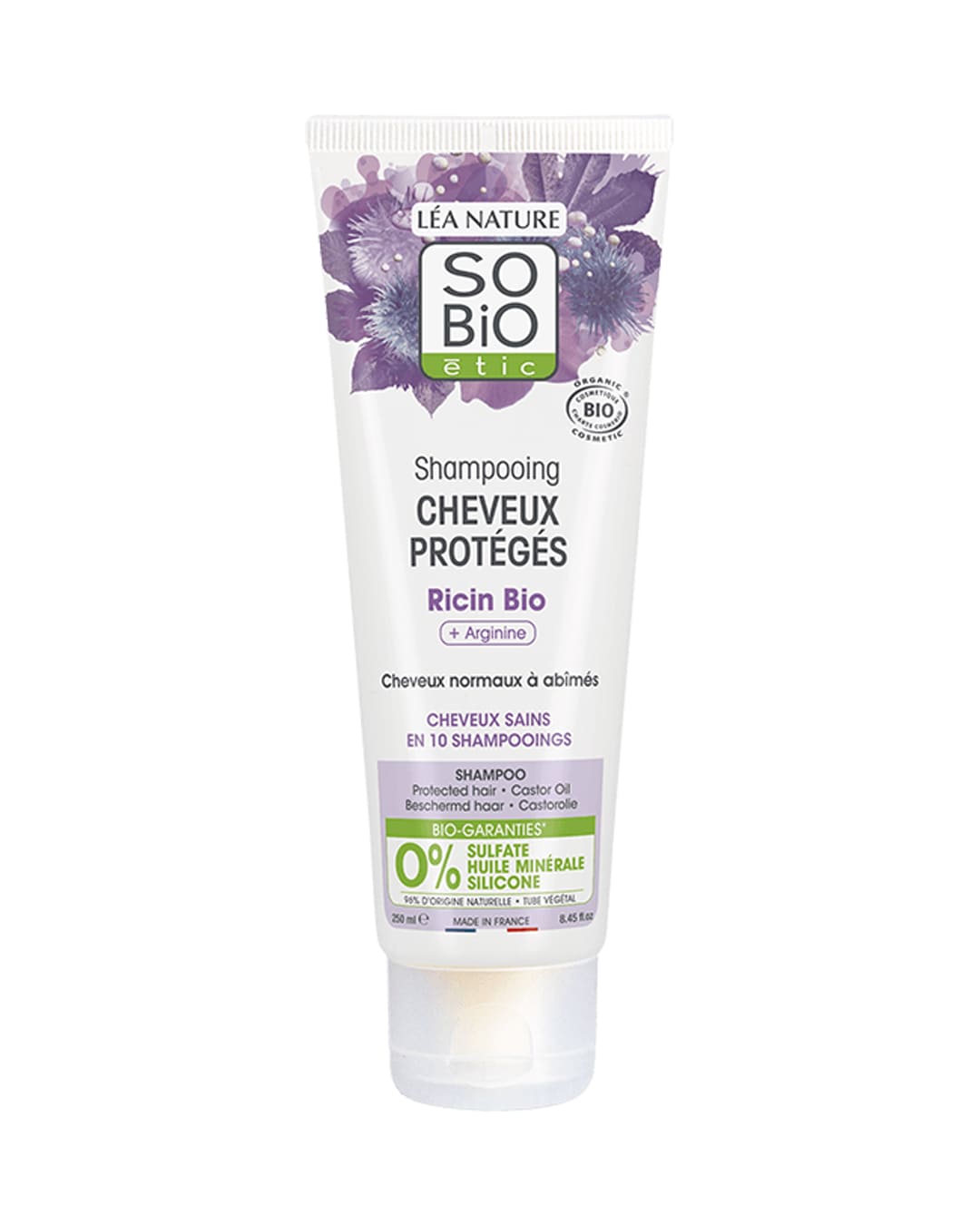 Lo shampoo protettivo all’olio di Ricino e arginina di SO’BiO étic è progettato per capelli normali e danneggiati.