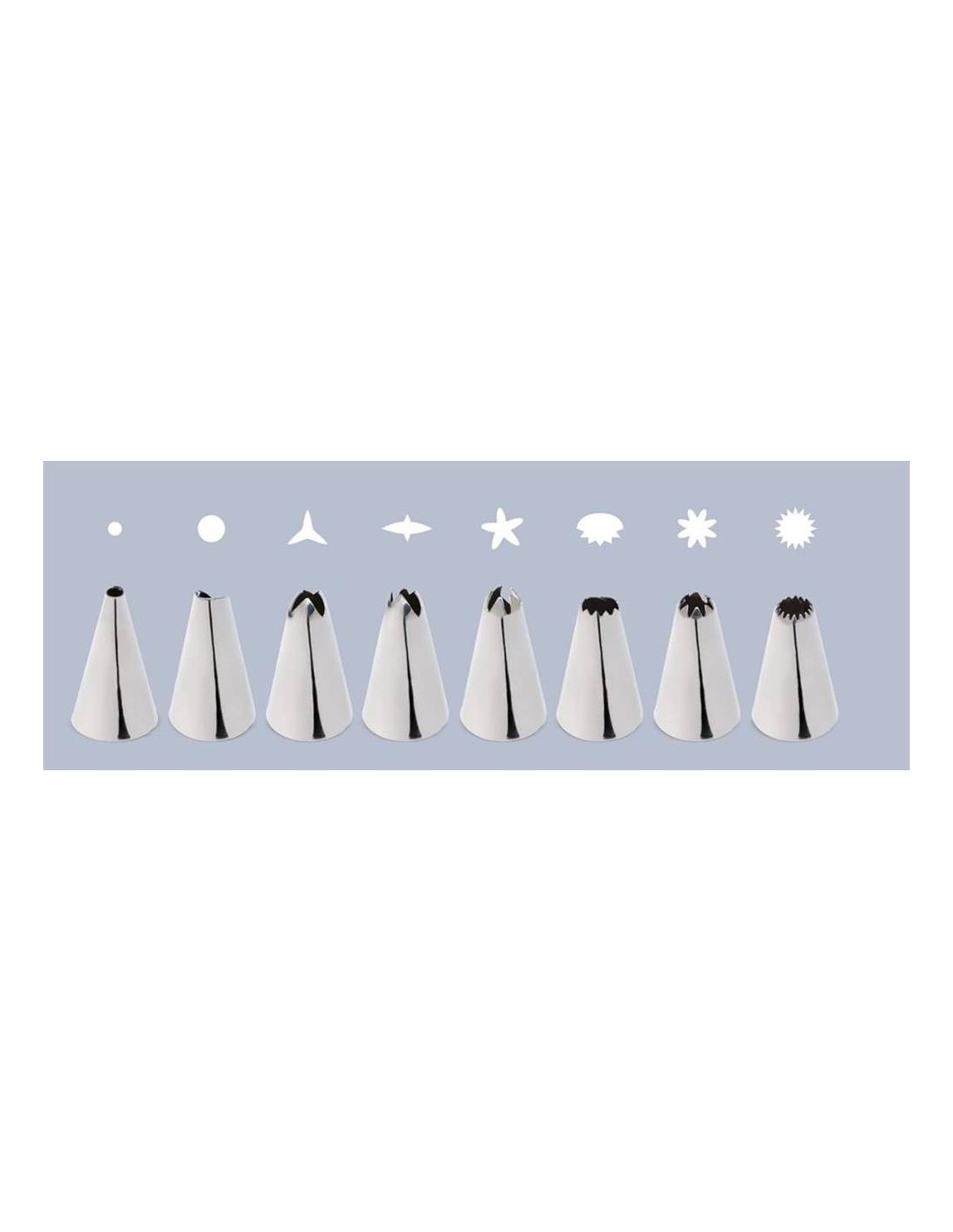 Siringa per decorare torte e pasticcini in modo sfizioso ed elegante, con gli 8 beccucci di diverse forme inclusi nella confezione.