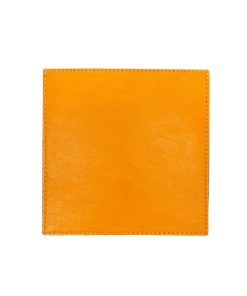 Custodia quadrata per un CD, in vera pelle color senape con interno scuro a contrasto.