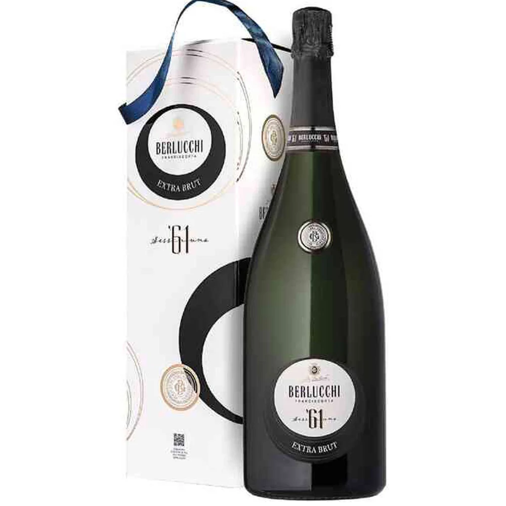 Il Spumante Berlucchi 61 Franciacorta Extra Brut lt 1,5 Astucciato è un vino spumante di alta qualità, prodotto nella regione della Franciacorta, famosa per i suoi vini pregiati. Questo spumante è stato prodotto utilizzando uve Chardonnay al 100%, coltivate in vigneti selezionati e vinificate secondo metodi tradizionali.