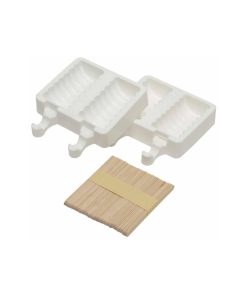 Set composto da 1 stampo da 4 cavità, da 50 stecchi in legno alimentare e un ricettario con sei gustose ricette per realizzare i gelati senza la macchina per gelato.