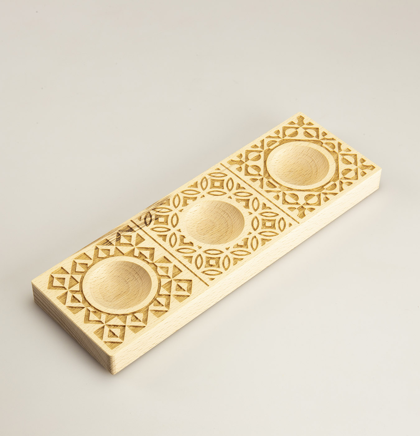 Stampo in legno da 3 posti per decorare i ravioli.