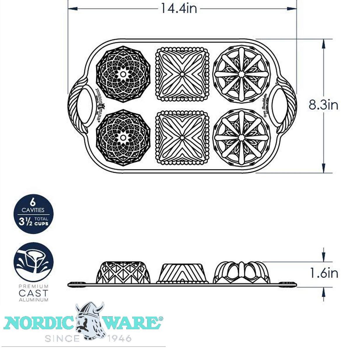 Le forme riprodotte nello stampo sono: Squared Pan, Vaulted Cathedral Bundt e Jubilee Bundt.