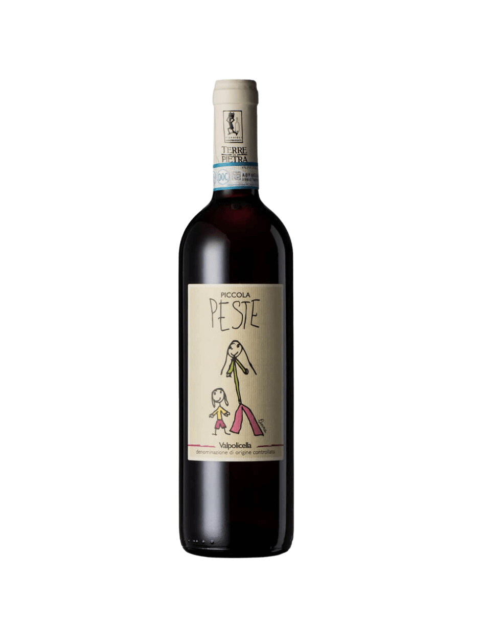 La piccola peste di Terre di Pietra è ottenuta da vari vitigni, tra i quali corvina per il 60%, Rondinella 30%, Molinara 10%, tutti vitigni della zona del Valpolicella.