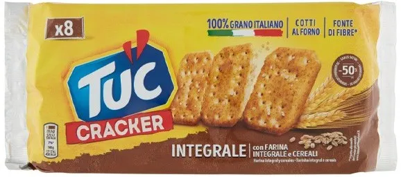 Tutto il gusto di TUC con il benessere di preziose fonti di fibre come farina integrale e cereali, per uno snack equilibrato senza rinunciare al piacere.Il cracker integrale che non ti aspettavi! Con la sua versatilità è ideale per una pausa o per accompagnare pranzo e cena.