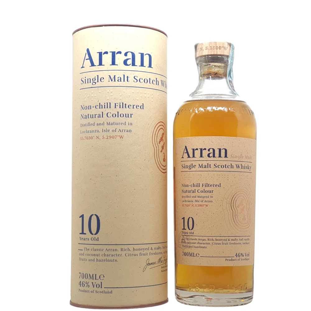 Il Whisky Arran cl 70 10 anni Astucciato è presentato in un elegante astuccio, che lo rende perfetto come regalo o per una serata di degustazione raffinata. La bottiglia ha un design classico e sobrio, che si adatta a qualsiasi collezione di whisky.