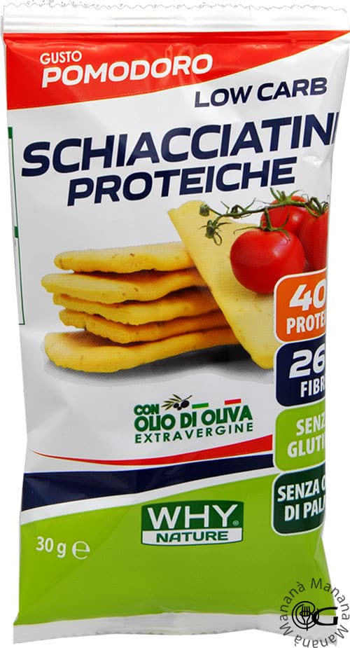 Le schiacciatine proteiche WHYNature sono un alimento con il 40% di proteine, senza olio di palma e senza glutine, ad alto contenuto di fibre.