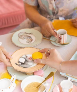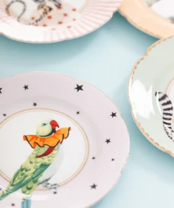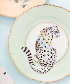 Questo set di piatti da dolce è l’ incarnazione dello stile Yvonne Ellen: la vita animale giustapposta in composizioni originali e colorate. I piatti da dolce color pastello sono decorati con quattro degli animali iconici di Yvonne (Tigre/Leopardo/Elefante/Pappagallo) decorati con graziosi accessori e sfondi fantasia. Con favolosi dettagli dorati, sono perfetti per aggiungere un tocco funky alla tua prossima cena!
